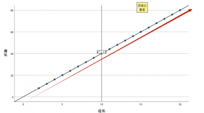 进入简单散点图后,将我们所需要进行可视化的变量填充到x轴和y轴之中,一般来说自变量填充到x轴,因变量填充到y轴。因此,我们将周长填充到y轴,边长填充到x轴之中。完成设置之后点击确定,即可生成散点图。